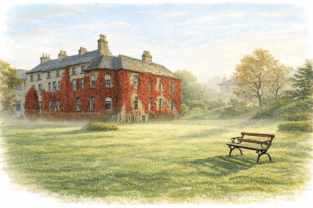 Along a corridor was a glass hatchway and a door leading to the administration offices. It was previously a theatre built by the 1st Viscount Mountjoy, and its ornate plaster ceiling is said to be a replica of one in the old Irish Parliament building. The building creaked and groaned with age, and apart from my office, the rest of the furniture came from a different era. A musty smell prevailed throughout. A conference room to the right of the corridor was sparse, with a cupboard halfway along one wall opposite a large, forever cold, cast-iron radiator. Inside the cupboard were a few rolls of maps and an Irish Army Captain’s uniform, hanging, unused.
