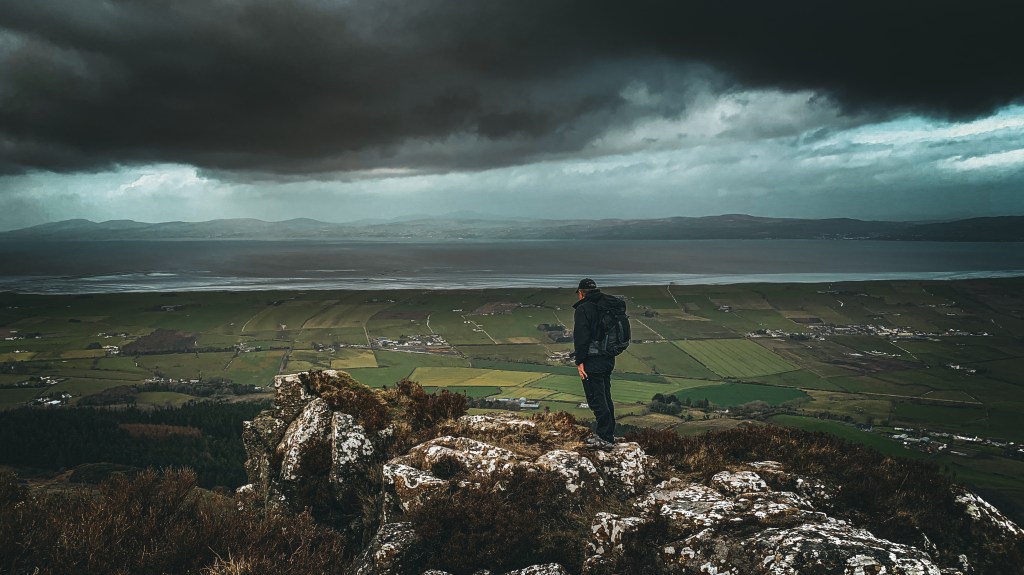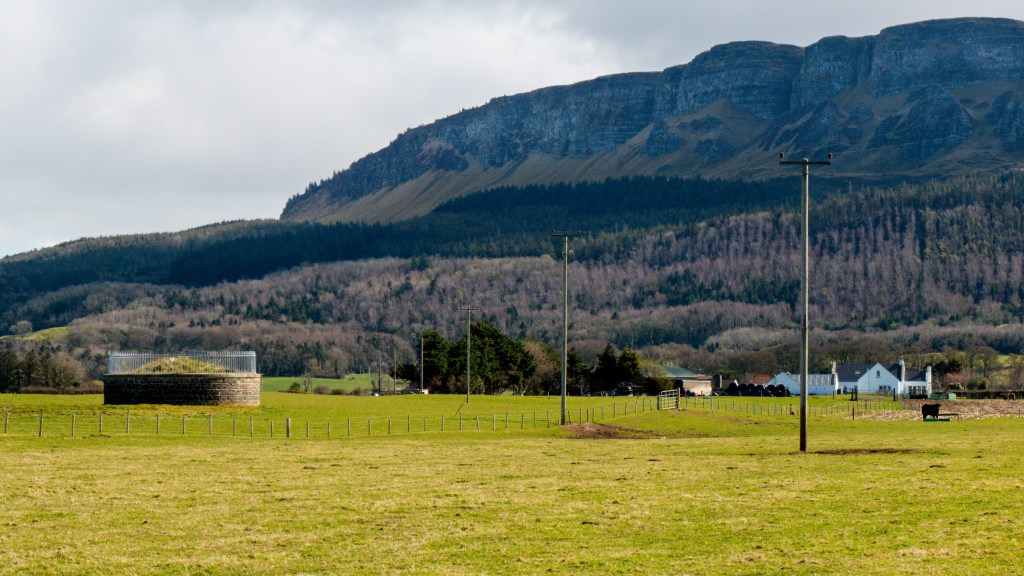 Looking from the top of Binevenagh cliffs, across the plain to Lough Foyle and Donegal in the distance.