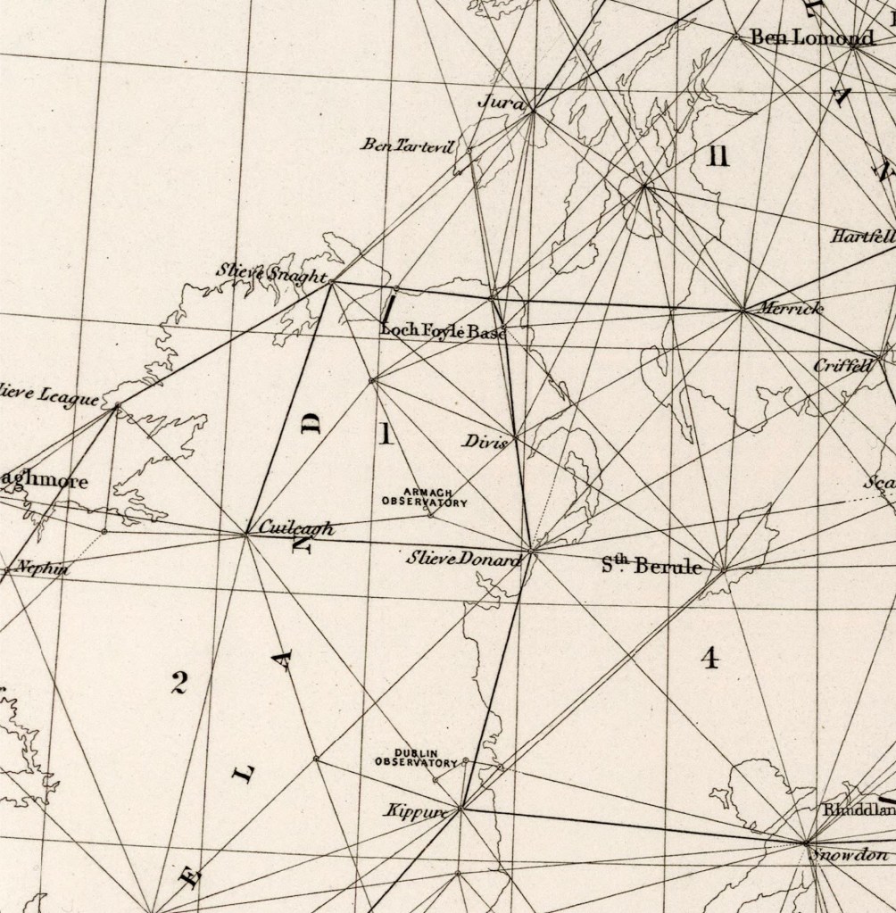 - “An Account of the Measurement of Lough Foyle Base with its verification and extension by Triangulation”, by Captain William Yolland, Board of Ordnance, 1847